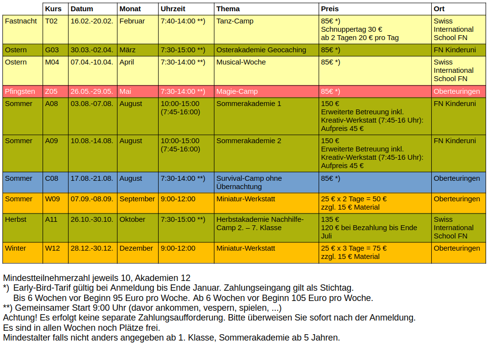 Das Kürzel für Ihre Ferienbetreuung entnehmen Sie bitte der obigen Tabelle.